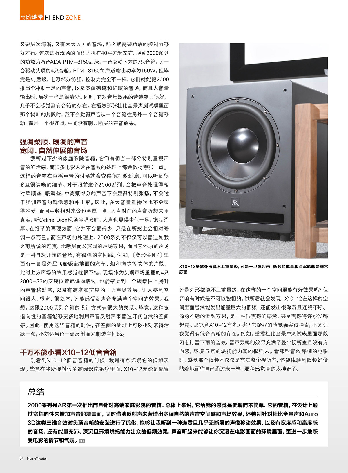 《家庭影院技術(shù)》雜志評(píng)測(cè)AR 2000系列