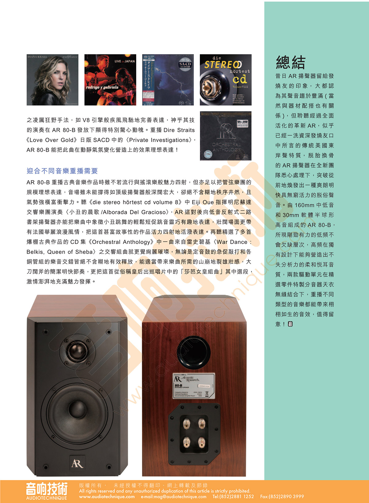 《音響技術(shù)》雜志評(píng)測(cè)AR 80-B書架箱
