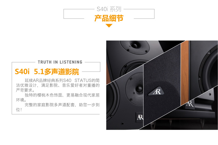 美國(guó)AR(Acoustic Research)S40i(櫻桃木色)家庭影院 音箱5.1/7.1聲道影院院套裝 客廳影院