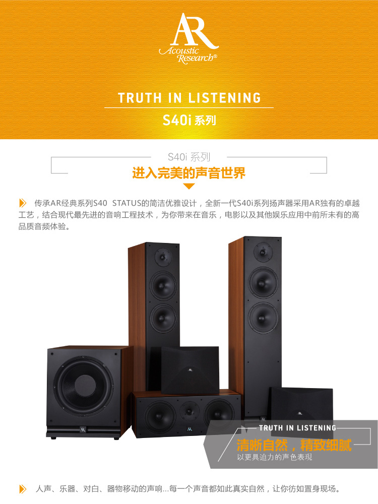 美國AR(Acoustic Research)S40i(櫻桃木色)家庭影院 音箱5.1/7.1聲道影院院套裝 客廳影院