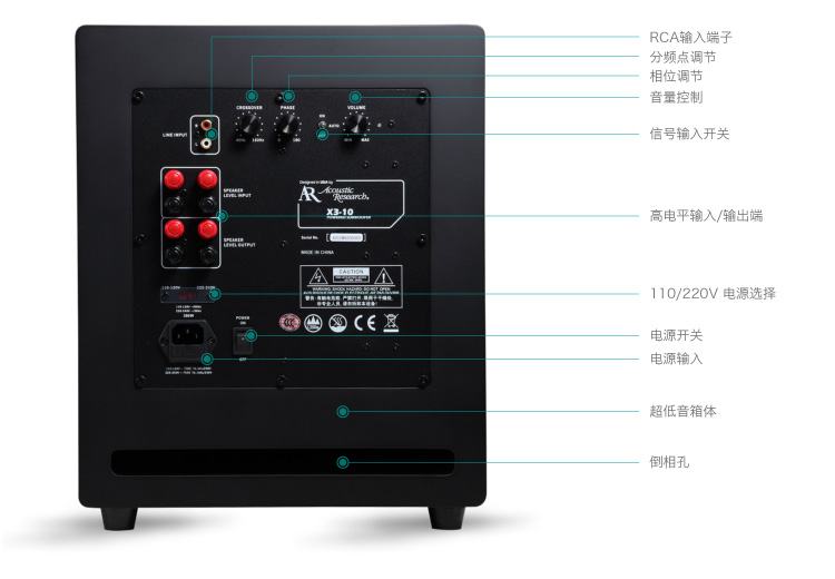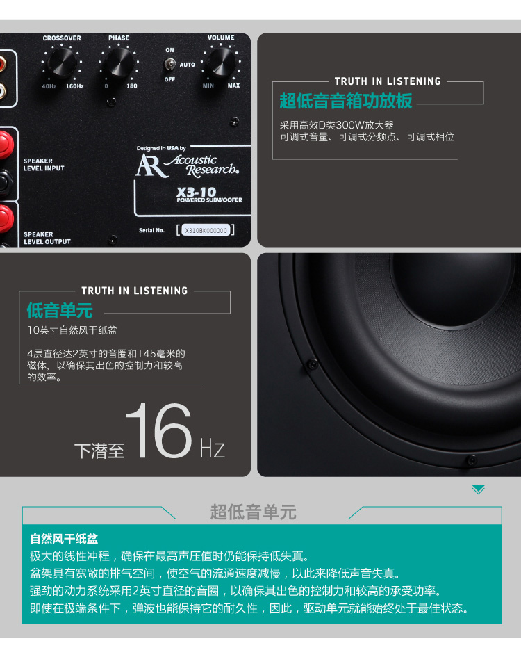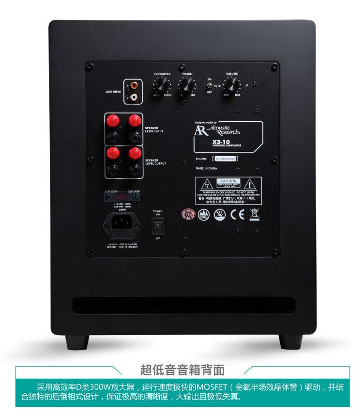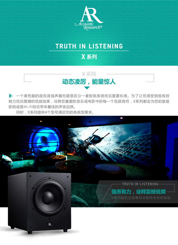 美國(guó)AR(Acoustic Research)X10-12(黑色)家庭影院 音箱音箱有源超低音 低音炮 12寸